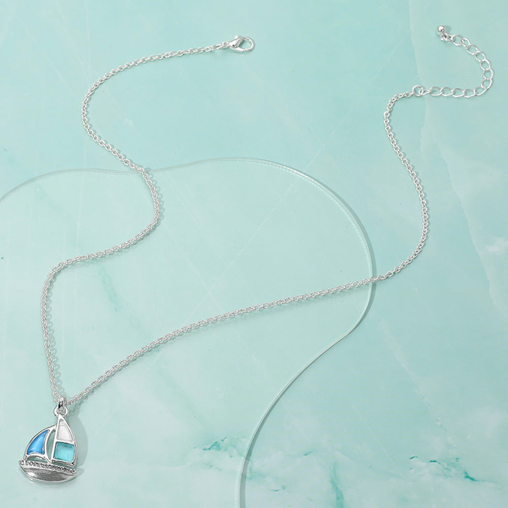 Capture the spirit of the sea with this delicate sailboat necklace, featuring frosted sea glass sails and a minimalist design. A perfect nod to ocean adventures and sunlit days.